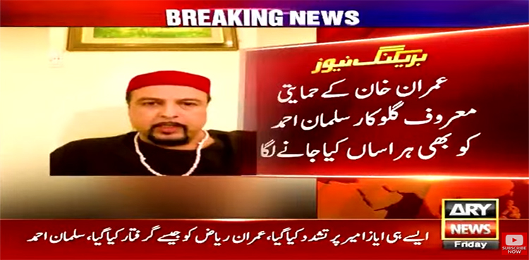 تحریک انصاف کے چیئرمین عمران خان کے حمایتی معروف گلوکار سلمان احمد کو بھی ہراساں کیا جانے لگا۔