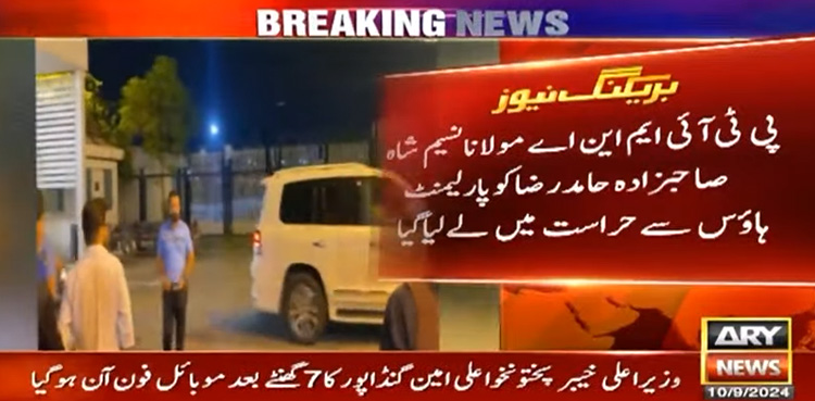 اس کے علاوہ پی ٹی آئی ایم این اے زین قریشی، شیخ وقاص اکرم اور شاہ احد خٹک کو بھی پارلیمنٹ ہاؤس سے حراست میں لیا گیا ہے۔
