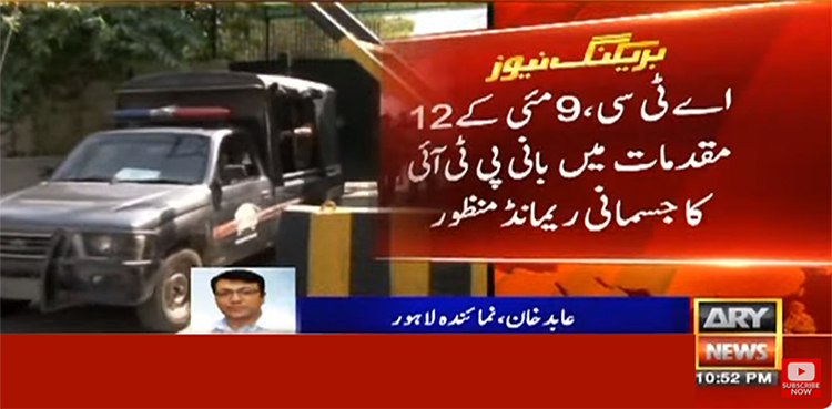 انسداددہشت گردی عدالت نے 9 مئی کے 12مقدمات میں بانی پی ٹی آئی کا 10 روزہ جسمانی ریمانڈ منظور کر لیا۔