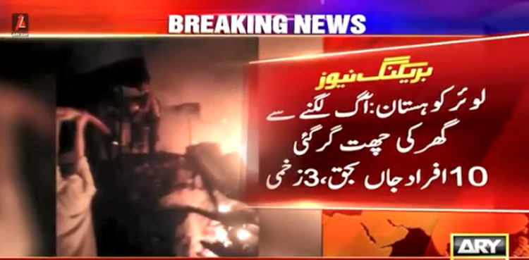 جس کے نتیجے میں چھت کے ملبے تلے دب کر ایک ہی خاندان کے 11 افراد جاں بحق ہو گئے جبکہ آگ بجھانے کی کوشش میں 2 افراد زخمی بھی ہوئے۔