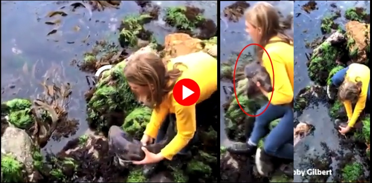 انٹرنیٹ پر وائرل ہونے والی ویڈیو میں دیکھا جاسکتا ہے کہ گیارہ سالہ بچی سمندری تالاب میں پھنسنے والی ڈرافٹ بورڈ شارک کو پکڑ رہی ہے۔