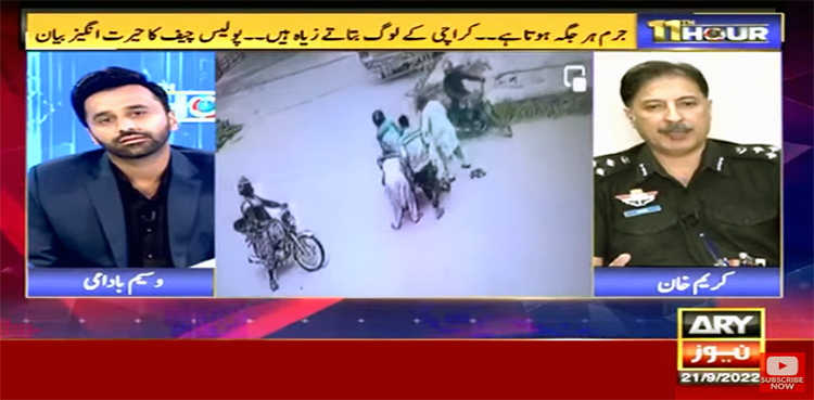 اے آر وائی نیوز کے پروگرام الیونتھ آور میں گفتگو کرتے ہوئے انہوں نے کہا کہ سوسائٹی میں کرائم بھی ہوتا ہے کرمنل جسٹس سسٹم بھی ہوتا ہے رواں سال موبائل ڈکیتی کی وارداتوں میں اضافہ ہواہے لیکن اغوابرائےتاوان اور بینک ڈکیتی کی وارداتوں میں کمی ہوئی ہے رواں سال بھتےکےکیسزبھی انتہائی کم ہیں۔