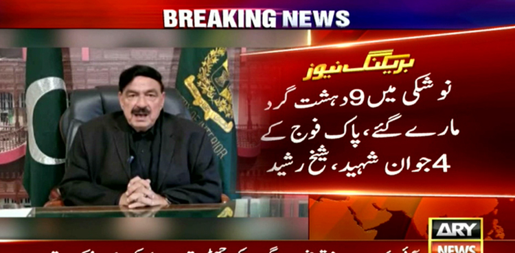 اسلام آباد : وفاقی وزیر داخلہ شیخ رشید کا کہنا ہے کہ بلوچستان حملوں میں 15 امن دشمن مارے گئے جبکہ پاک فوج کے چار جوانوں نے جام شہادت نوش کیا۔