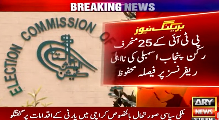 اسلام آباد: الیکشن کمیشن نے پچیس ارکان پنجاب اسمبلی کے نااہلی ریفرنسز پر فیصلہ محفوظ کرلیا ہے۔