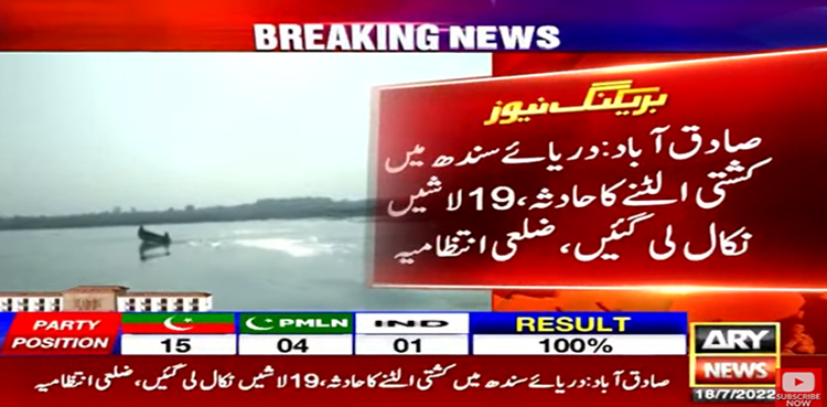 اسسٹنٹ کمشنر صادق آباد کے مطابق کشتی الٹنے کے نتیجے میں نوے سے زائد افراد ڈوب گئے تھے، جن میں سے انیس افراد کی لاشیں نکالی جاچکی ہیں جبکہ مقامی افراد نے اپنی مدد آپ کے تحت 35 افراد کو ڈوبنے سے بچایا۔