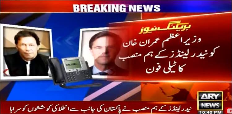 تفصیلات کے مطابق انہوں نے ان خیالات کا اظہار ہالینڈ کے ہم منصب سے دوران ٹیلی فونک گفتگو میں کیا، وزیراعظم عمران خان کا کہنا تھا کہ افغانستان معاملے پر پاکستان خطےمیں پیشرفت کوقریب سےدیکھ رہاہے، پاکستان علاقائی،عالمی شراکت داروں سے رابطےمیں ہے۔