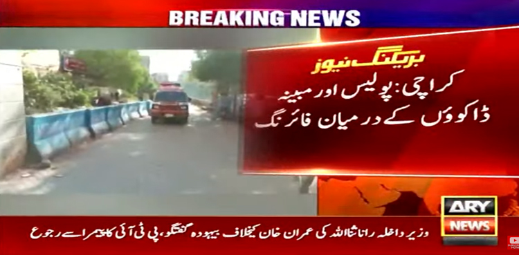 اے آر وائی نیوز کی رپورٹ کے مطابق پولیس اور مبینہ ڈاکوؤں کے درمیان فائرنگ کا تبادلہ ہوا جس میں دو ملزمان مارے گئے۔ واقعے کی اطلاع پر پولیس موقع پر فوری پہنچی تھی۔