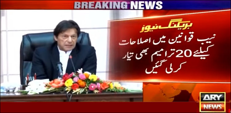 اے آر وائی نیوز کے مطابق نیب قوانین میں اصلاحات کے لیے 20 ترامیم کرلی گئیں، ترمیم کا مجوزہ مسودہ وزیراعظم عمران خان کو پیش کردیا گیا۔