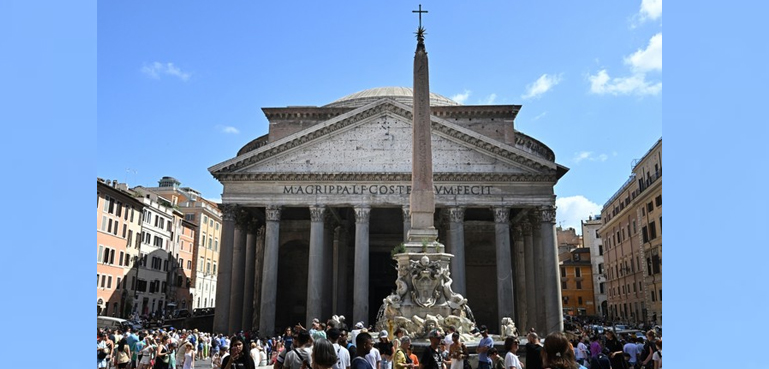 واضح رہے کہ پینتھیون گرجا گھر قدیم روم کے بہترین محفوظ شدہ آثار میں سے ایک ہے جو اپنے غیرمعمولی گنبد کے لیے مشہور ہے۔ اس گنبد کا قطر 43 میٹر (140 فٹ) ہے اور اس میں ایک کھلا دائرہ بھی موجود ہے جس کے ذریعے روشنی اندر داخل ہوتی ہے اور کبھی کبھار بارش بھی ہوتی ہے۔