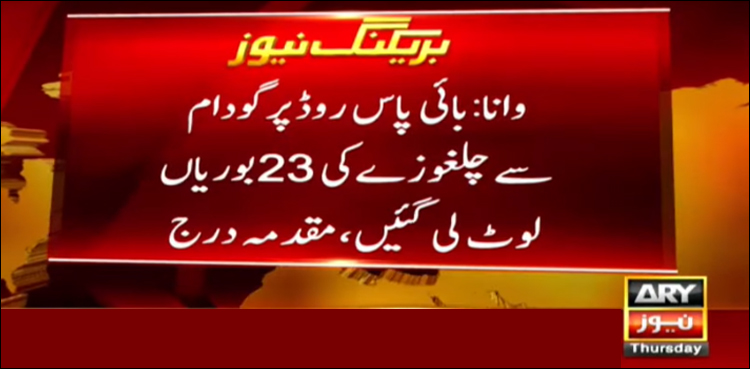 متاثرہ تاجروں کا کہنا ہے کہ لوٹے گئے چلغوزوں کی قیمت ایک کروڑ بیس لاکھ بنتی ہے، تاجروں نے سٹی تھانہ وانا میں واقعے کا مقدمہ درج کروادیا ہے۔