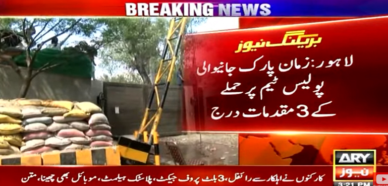 عمران خان کی رہائشگاہ زمان پارک جانے والی پولیس ٹیم پر حملے کے تین مقدمات پاکستان تحریک انصاف کے کارکنان کے خلاف درج کرلیے گئے ہیں۔