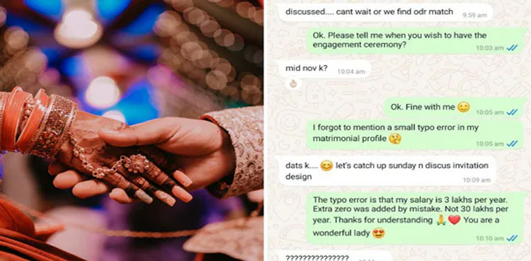 کش سف شخص نے سوشل میڈیا پلیٹ فارم ایکس پر چیٹ کا اسکرین شاٹ شیر کیا، جس میں پہلے تو خاتون انھیں جلد سے جلد منگنی کرنے کے لیے کہہ رہی تھیں جب تک اسے یہ نہیں پتا چلا کہ اس کے ہونے والے شوہر کی تنخواہ کم ہے۔