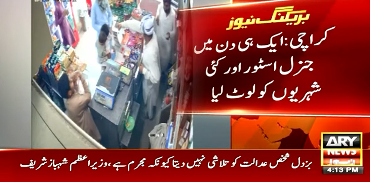 کراچی کے علاقے ملیر میں تین رکنی ڈکیت گینگ سرگرم ہے جس نے ایک ہی دن میں جنرل اسٹور اور کئی شہریوں کو لوٹ لیا۔