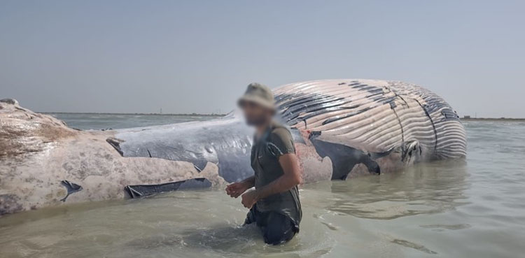 پاکستان ایران کے درمیان ساحلی علاقے میں 35 فٹ لمبی بلیو وہیل مردہ پائی گئی