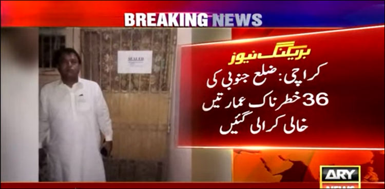 کراچی: سمندری طوفان کے خدشات کے پیش نظر کراچی کے ضلع جنوبی میں 36 خطرناک قرار دی گئی عمارتوں کو خالی کرا لیا گیا۔