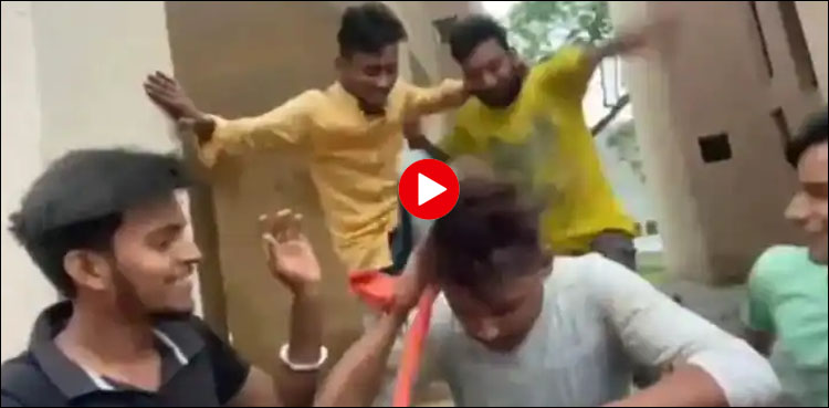 ویڈیو میں دیکھا جاسکتا ہے کہ لڑکے اپنے دوست کو ’پاوری ہورہی ہے‘ کے انداز میں مار رہے ہیں اور کہہ رہے ہیں کہ ’یہ ہمارا دوست ہے، مارو پارٹی ہورہی ہے۔‘