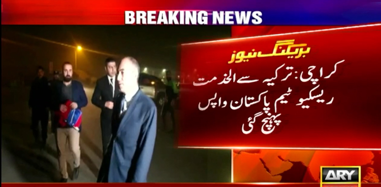 ترک قونصل جنرل امیراوزبے نے الخدمت ریسکیو ٹیم کا استقبال کیا، سینتالیس رکنی ریسکیو ٹیم نےتیرہ دن امدادی سرگرمیوں میں حصہ لیا۔