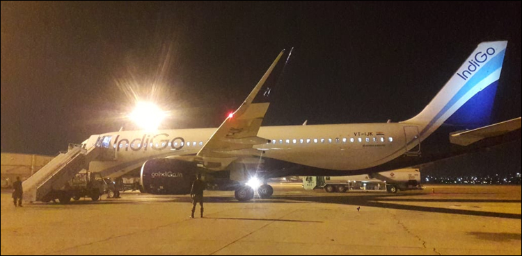 بھارتی ایئر لائن انڈیگو کے طیارے کے کپتان نے طیارے کو بحفاظت لینڈ کرایا، ہنگامی لینڈنگ کے بعد طیارے کے مسافروں کو کراچی ایئر پورٹ کے ٹرانزٹ لاؤنج منتقل کیا گیا، کراچی ایئر پورٹ منیجر محمد عمران خان کے مطابق مسافروں کو ناشتہ بھی فراہم کیا گیا۔