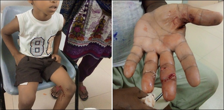 پاگل کتے نے ایک بچے کے گال پر کاٹا ہے، جب کہ ایک بچے کی ٹانگ اور ہاتھ زخمی ہوئے، بچے کی آنکھ بال بال بچی ہے، جب کہ بڑی عمر کے افراد کے ہاتھ اور پیر پر کتے نے کاٹا۔