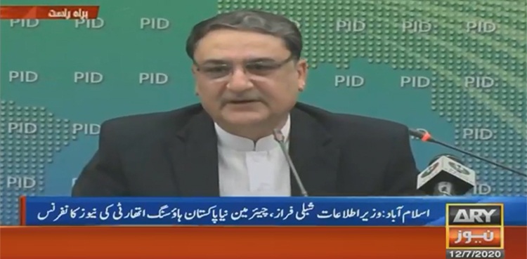 اسلام آباد میں وفاقی وزیر اطلاعات شبلی فراز کے ہمراہ پریس کانفرنس کرتے ہوئے چیئرمین پاکستان ہاؤسنگ اسکیم لیفٹیننٹ جنرل انور علی نے کہا کہ کنسٹرکشن انڈسٹری کی ترقی سے بہت سے شعبوں کوفائدہ ہوگا، اپریل میں