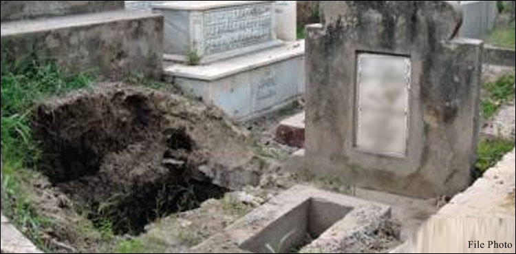 پولیس کا کہنا ہے کہ ملزم کو شہری کی شکایت پر گرفتار کیا گیا، گرفتار ملزم نے پرانی قبروں میں تدفین کرانے کا اعتراف کرلیا۔