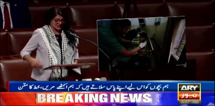 اے آر وائی نیوز کے مطابق مسلم امریکی خاتون رکن کانگریس رشیدہ طلیب نے کانگریس میں اظہار خیال کرتے ہوئے کہا کہ دوستوں کو یاد دلادوں کہ فلسطینی بھی وجود رکھتے ہیں، وہ بھی انسان ہیں، انہیں بھی خواب دیکھنے کی اجازت ہے۔