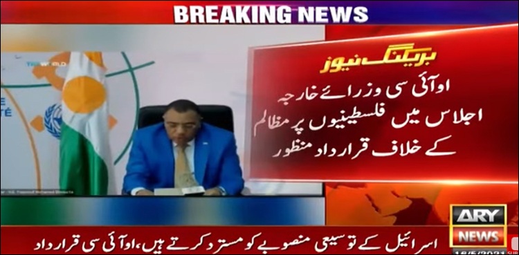او آئی سی کی قرارداد میں مطالبہ کیا گیا کہ عالمی برادری اپنی ذمہ داریاں پوری کرے، اسرائیل فلسطین میں حالات مزید خراب کرنے سے باز رہے۔