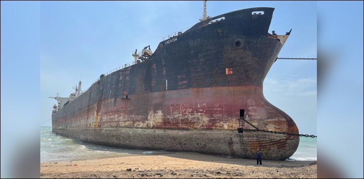 حب: انٹرپول کی وارننگ کے باوجود بلوچستان کے ساحل گڈانی کے شپ یارڈ پر انتہائی مضرِ صحت کیمیکل سے بھرے بحری جہاز کو دھوکا دہی سے لنگر انداز کردیا گیا۔