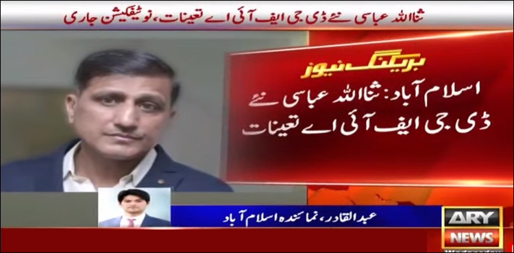 اے آر وائی نیوز کے مطابق ڈی جی ایف آئی اے واجد ضیا کو تبدیل کردیا گیا ان کی جگہ ثنا اللہ عباسی کو نیا ڈی جی ایف آئی اے تعینات کیا گیا ہے۔