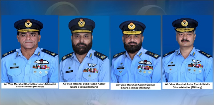 اسلام آباد: پاک فضائیہ کے 4 ایئر آفیسرز کو ایئروائس مارشل کےعہدوں پرترقی دے دی گئی۔