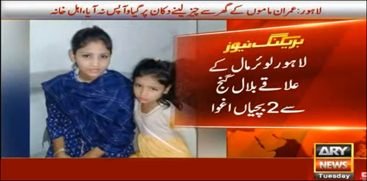 پولیس کے مطابق بلال گنج میں رکشہ ڈرائیور کی دو بچیوں کو نامعلوم افراد نے اغوا کیا، 12 سالہ عمران کو رائیونڈ کی حدود شہنشا ٹاؤن سے اغوا کیا گیا۔