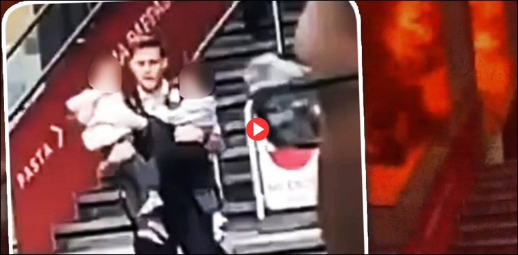 ایک پولیس اہلکار اپنی جان پر کھیل کر اسٹیشن میں داخل ہوا اور وہاں موجود دو کمسن بچوں کو باحفاظت طریقے سے باہر نکال کر لایا۔