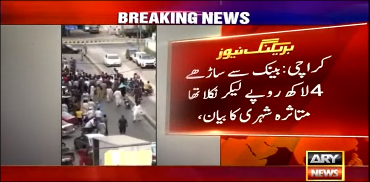 شہری بینک سے ساڑھے چار لاکھ روپے لے کر نکلا تھا، موٹر سائیکل پر سوار دو ملزمان نے کار سوار سے لوٹ مار کی، ملزمان کے فرار ہوتے ہی شہری نے فائرنگ کردی جس کے نتیجے میں ملزم موقع پر ہی مارا گیا۔