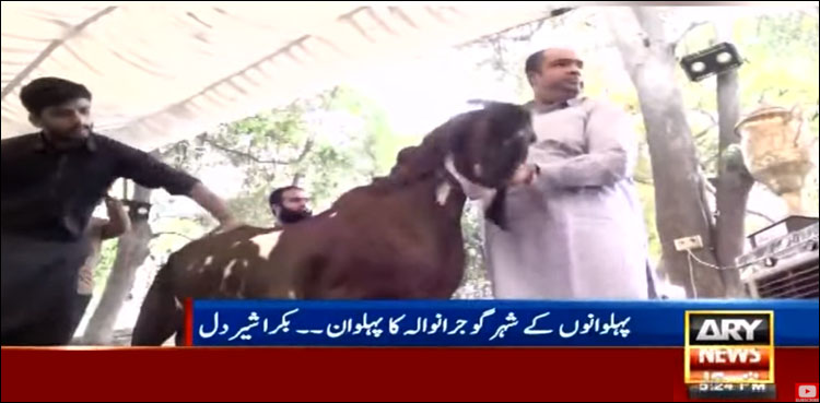 پہلوانوں کے شہر گوجرانوالہ میں بھی شیر دل بکرا لوگوں کی توجہ کا مرکز بن گیا، لوگ دور دراز علاقوں سے بکرے کو دیکھنے کے لیے آرہے ہیں اور اس کے ساتھ سیلفیاں بھی بنوا رہے ہیں۔