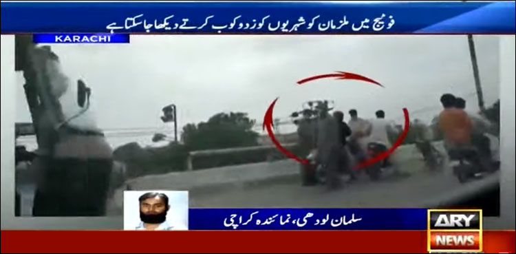 فوٹیج میں ملزمان کو شہری کو زدوکوب کرتے دیکھا جاسکتا ہے، ملزمان نے لوٹ مار کے دوران مزاحمت کرنے پر شہری کو فائرنگ کرکے زخمی کردیا۔