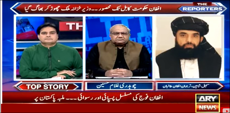 اے آر وائی نیوز کے پروگرام ’دی رپورٹرز‘ میں گفتگو کرتے ہوئے ترجمان افغان طالبان سہیل شاہین نے کہا کہ خود کو سپر پاور کہنے والے قابضین سے ہم نے افغانستان کو آزاد کرایا، چاہتے ہیں ملک کی تعمیر نو ہو، افغانستان ایک پر امن ملک ہو اور ملک ترقی کرے۔