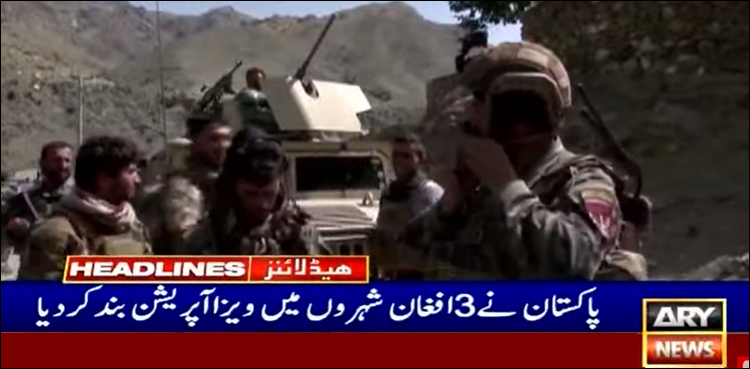اے آر وائی نیوز کے مطابق ذرائع کا کہنا ہے کہ پاکستان نے افغانستان کے تین شہروں مزار شریف، قندھار، ہرات کے قونصل خانوں میں ویزا آپریشن بند کیا ہے۔