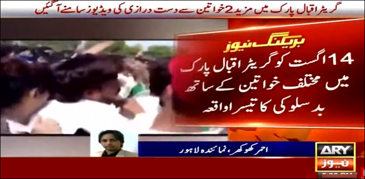 اے آر وائی نیوز کے مطابق لاہور کے گریٹر اقبال پارک میں 14 اگست کے روز مزید 2 خواتین سے دست درازی کی ویڈیوز سامنے آئی ہیں۔