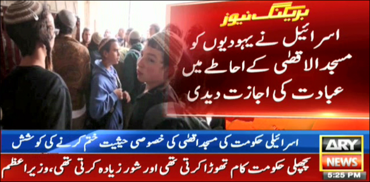 یروشلم: اسرائیل کی حکومت نے یہودیوں کو مسجدِ الاقصیٰ کے احاطے میں عبادت کی اجازت دے دی۔