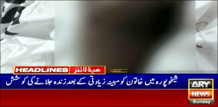 اے آر وائی نیوز کے مطابق شیخوپورہ میں خاتون کومبینہ زیادتی کے بعد ملزمان نے زندہ جلا کر نہر میں پھینک دیا۔