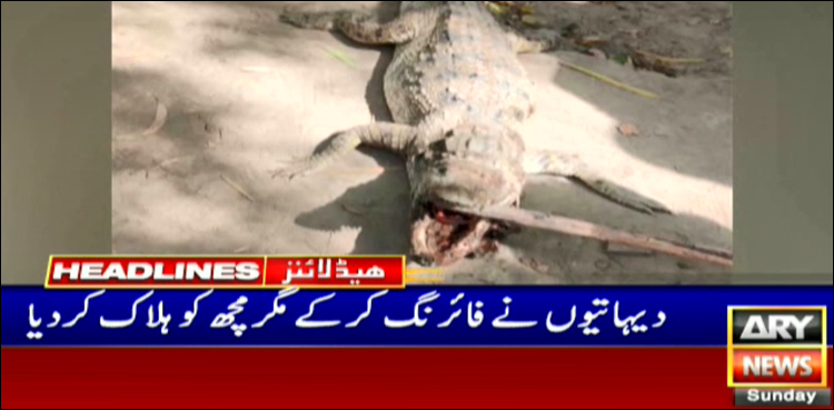علاقہ مکینوں کو جب موجودگی کی اطلاع ملی تو انہوں نے فائرنگ کر کے مگر مچھ کو ہلاک کردیا۔