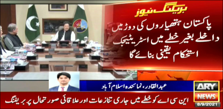 اعلامیے کے مطابق نیشنل کمانڈ اتھارٹی کو خطےمیں جاری تنازعات پربھی تفصیلی بریفنگ دی گئی، جس پر شرکا نے روایتی اور اسٹریٹجک سطح پر بڑے پیمانے پر ہتھیاروں کے عدم استحکام پر تشویش کا اظہار کیا اور اسے امن و سلامتی کے لیے نقصان دہ قرار دیا۔