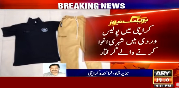 اے آر وائی نیوز کے مطابق کراچی کے ضلع ایسٹ پولیس نے کارروائی کرتے ہوئے جعلی پولیس یونیفارم میں شہریوں کو اغوا کرنے والے گینگ کو گرفتار کرلیا، ملزمان خود کو کسٹم، پولیس ودیگر ایجنسیوں کے اہلکار ظاہر کرتے تھے۔