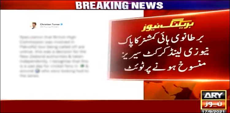 کراچی: پاکستان اور نیوزی لینڈ کے درمیان سیریز منسوخ ہونے پر برطانوی ہائی کمیشن کا بیان سامنے آگیا۔