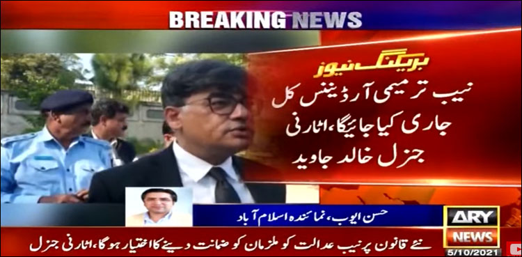 اسلام آباد: اٹارنی جنرل خالد جاوید کا کہنا ہے کہ نیب ترمیمی آرڈیننس کل جاری کیا جائے گا۔
