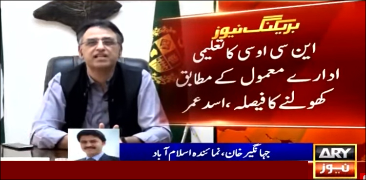 اسد عمر کا کہنا ہے کہ تعلیمی اداروں میں 50 فیصد حاضری کی شرط ختم کردی گئی ہے۔