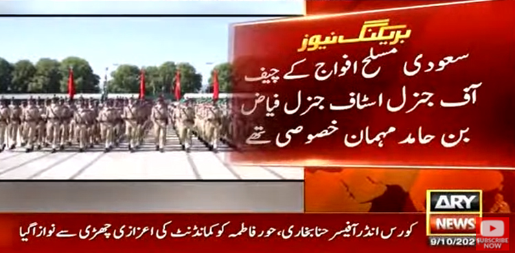 پاک فوج کے شعبۂ تعلقاتِ عامہ( آئی ایس پی آر ) کے مطابق پاکستان ملٹری اکیڈمی میں مختلف کورسز کی پاسنگ آؤٹ پریڈ ہوئی، جس میں سعودی مسلح افواج کے چیف آف جنرل اسٹاف جنرل فیاض بن حامد تقریب کے مہمان خصوصی تھے۔