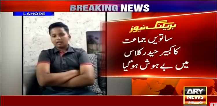 اے آر وائی نیوز کے مطابق لاہور کے علاقے غالب مارکیٹ کے قریب نجی اسکول پرنسپل عابد وسیم نے طالب علم کبیر حیدر کو بہیمانہ تشدد کا نشانہ بنایا جس کے نتیجے میں طالب علم بیہوش ہوگیا۔