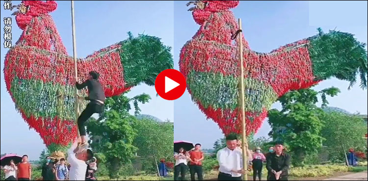 ویڈیو میں دیکھا جاسکتا ہے کہ نوجوان جس رفتار سے بانس پر چڑھتا ہے ایسی رفتار سے نیچے اترتے ہوئے اپنا کرتب مکمل کرلیتا ہے۔