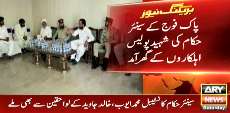 آئی ایس پی آر کے مطابق سینئر افسران نے پنجاب پولیس کے شہدا اے ایس آئی محمداکبر، کانسٹیبل غلام رسول، کانسٹیبل محمد ایوب، خالد جاوید کے لواحقین سے ملاقات کی اور بلند درجات کی دعا کی۔ سینئرحکام نےشہداکی قربانیوں پر خراج عقیدت پیش کیا۔